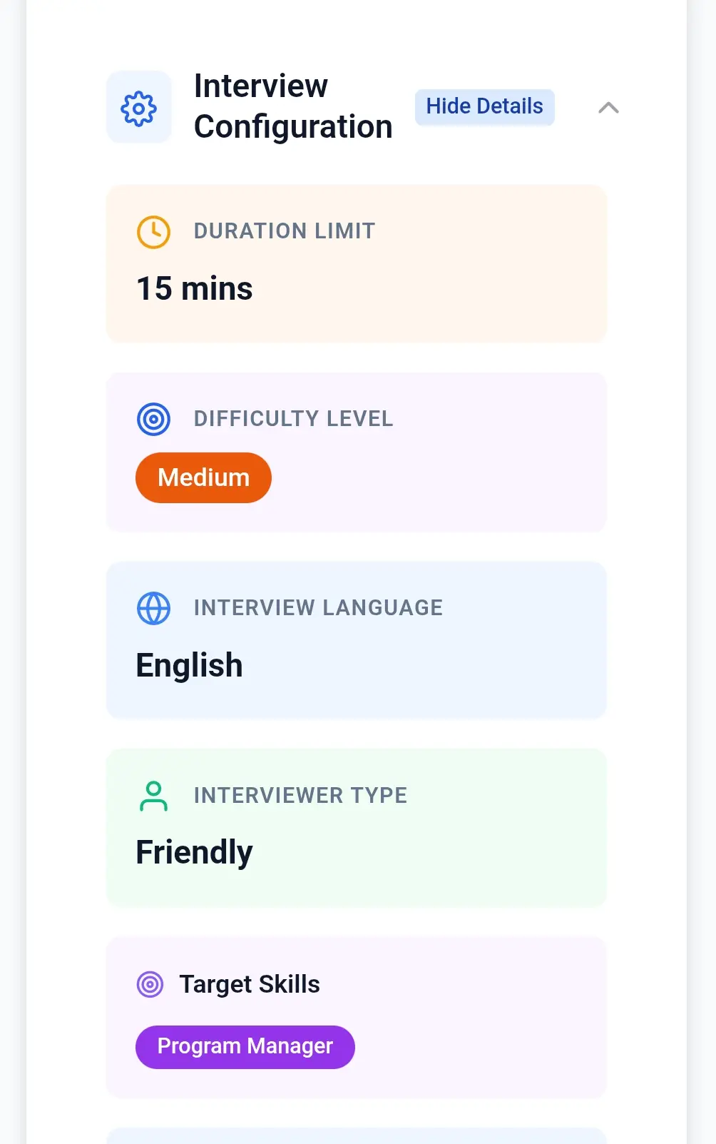 #1 Participate actively, complete and consume total 30 minutes of Interview time using our Interview application. A single Interview could range between between 5 minutes to 15 minutes. Try different Interview settings.